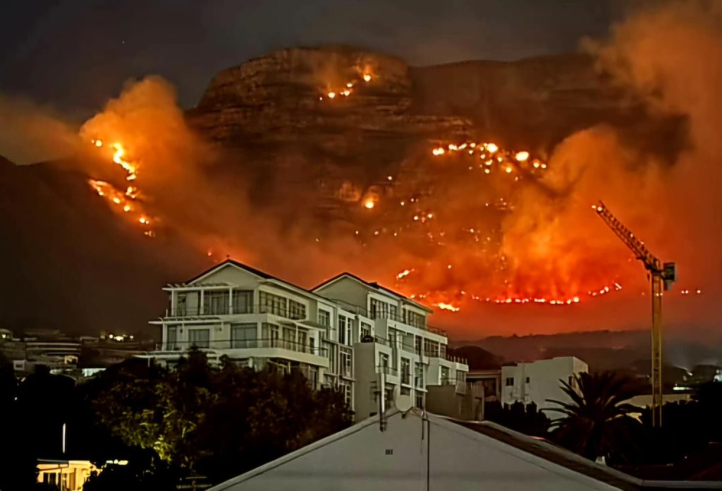 Umlilo oqubuke eTable Mountain ngezikhathi zasekuseni ngeSonto usunqandwe kakhulu.